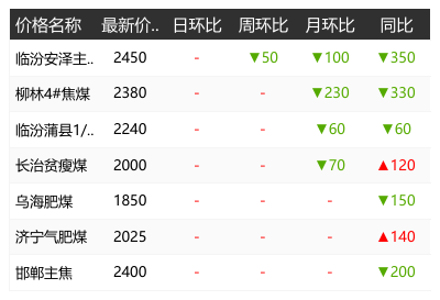 地图形式查看每日全国各地冶金煤价格涨跌。