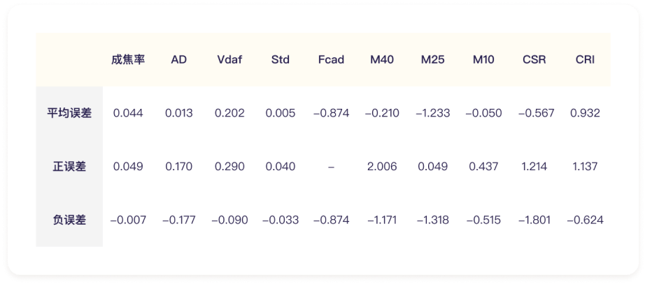 123个生产配比的统计结果,系统预测值与实际检测值的对比情况:(正数:预测值比实际值高:负数:预测值比实际值低)