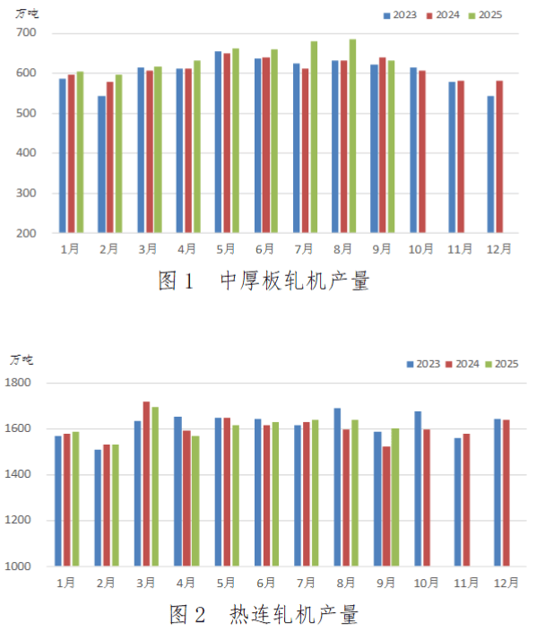 中厚板轧机、热连轧机、冷连轧机产量见图1、图2、图3。