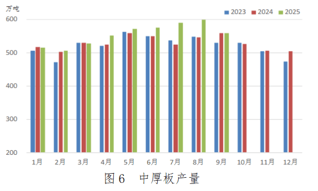中厚板轧机9月份生产特厚板、中厚板632万吨,同比减少7万吨,降幅1.1%;累计生产5792万吨,同比增加225万吨,增幅4.0%。