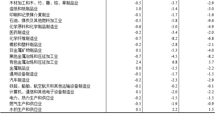 工业生产者购进价格中,燃料动力类价格下降7.4%,农副产品类价格下降5.2%,化工原料类价格下降5.0%,建筑材料及非金属类价格下降4.5%,黑色金属材料类价格下降2.8%,纺织原料类价格下降1.8%;有色金属材料及电线类价格上涨7.5%。