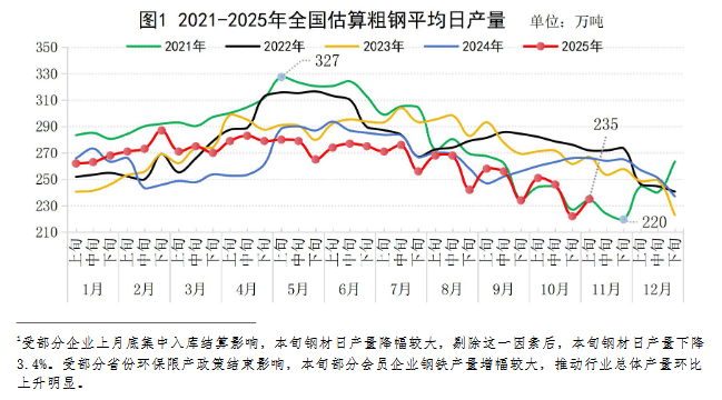 11月上旬重点钢企粗钢日产环比增6.0%