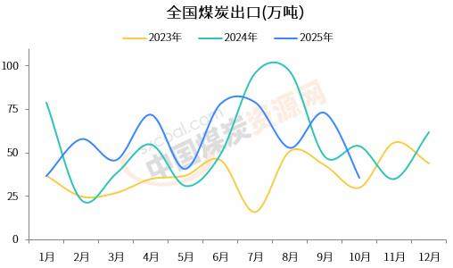 海关总署公布的数据显示,中国2025年10月份出口煤炭36万吨,同比下降32.3%,环比下降50.68%。